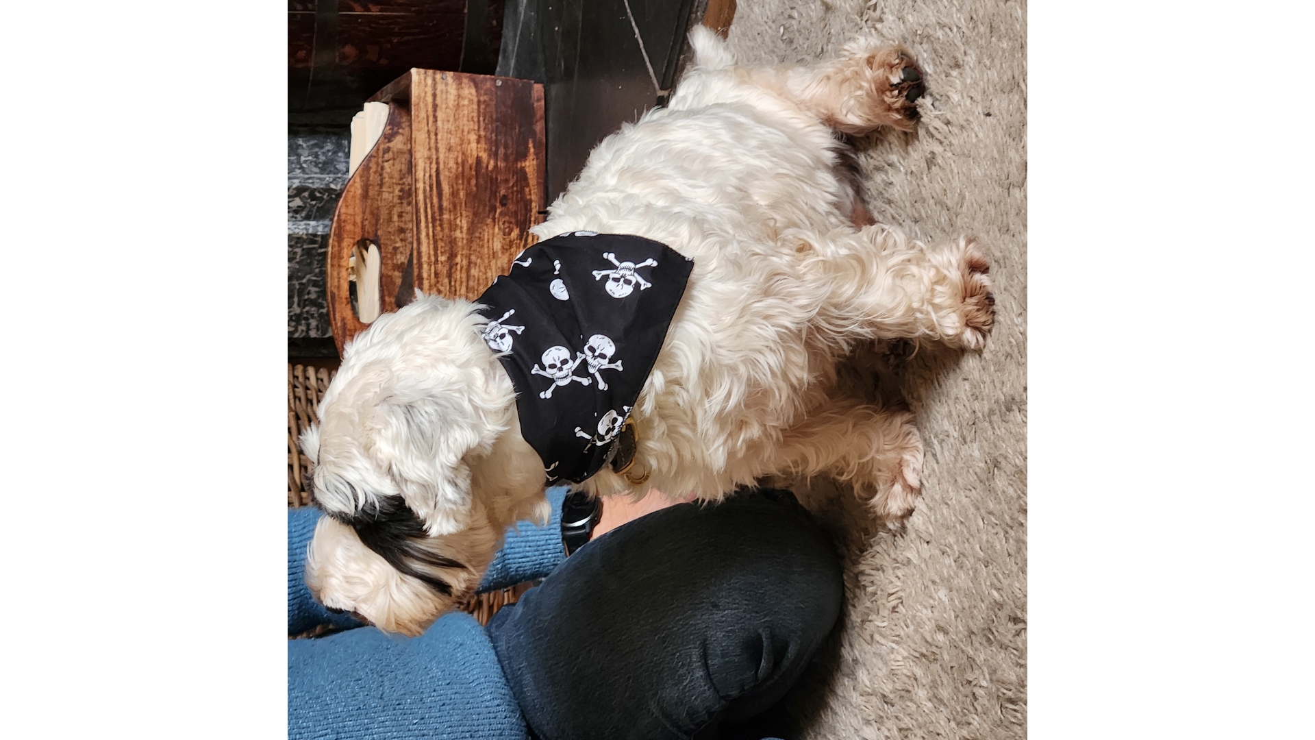 Add a skull and crossbones dog bandana to your cart now or walk the plank! Shiver me Timbers there's a pirate pooch onboard!