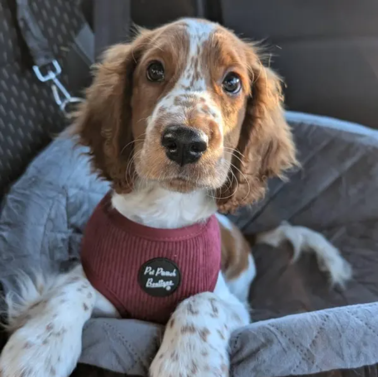 So happy with our purchase, our little Rusty looks wonderful in his burgundy cord! The quality is amazing and he puts up no fight in it so it must be comfy