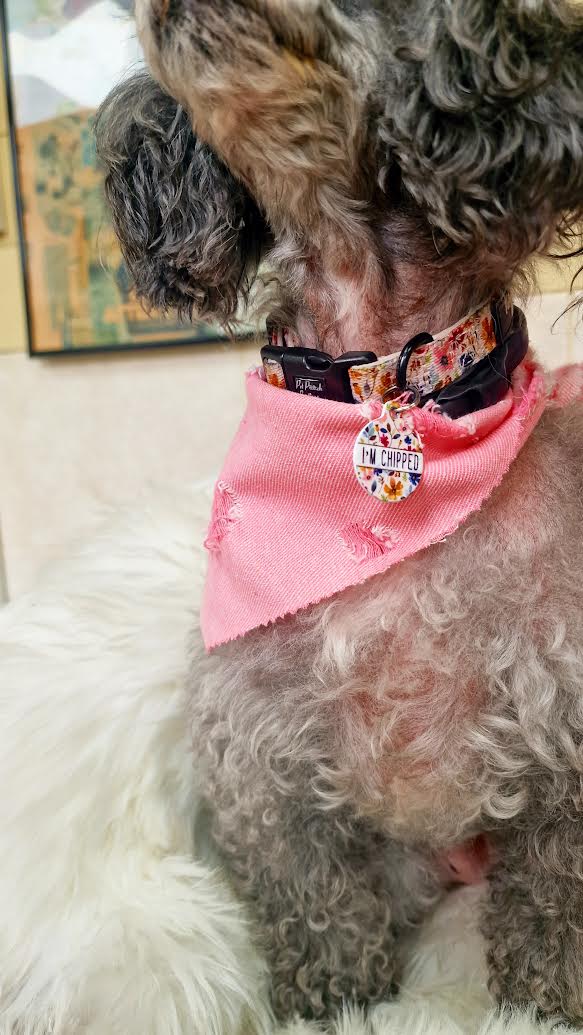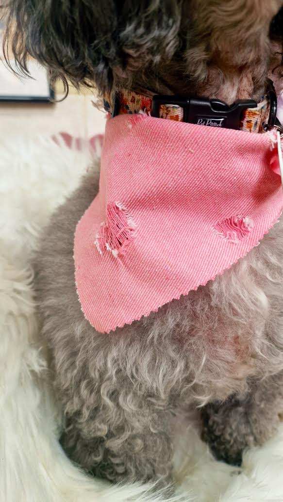 Dusty Rose Pink Denim Raw Edge Dog Bandana