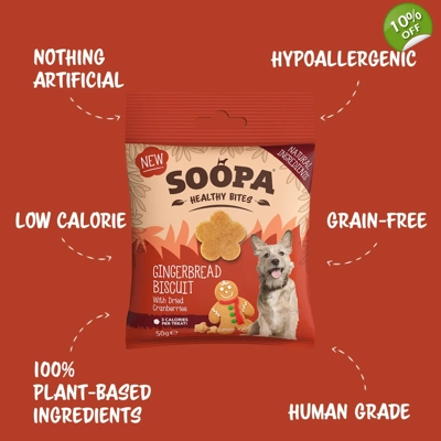 Pawsitively Festive! Our Gingerbread treats are the perfect winter snack for your pup! Baked with soothing ginger and nourishing cranberries they aid digestion, reduce inflammation, help soothe upset tummies and boost urinary tract health. Full of cosy, festive flavour, these treats are a holiday must-have for your furry friend!