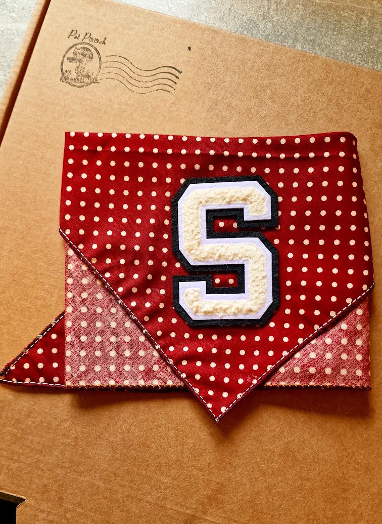 Perfect for adding that little extra personality to your dog's everyday look.Cream soft teddy chenille fabric letter with a black outline. 1 embroidered letter per bandana which will be hot fix applied.5cm letter height on XS/S and S/M bandanas7.5cm letter height on M/L and XL bandanas