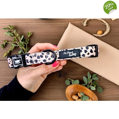 A soft cream coloured fabric scattered with inky black dots. Polka Pup Noir is a chic, neutral design with a dash of personality. Effortlessly stylish and easy to pair with any accessory, it’s the perfect print for pups who love to keep things classic with a fun twist.