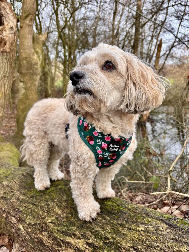 This harness is so beautiful, I love the gorgeous floral design, so fun for Summer. I ordered the Size Large for my pug and it fits her perfectly.