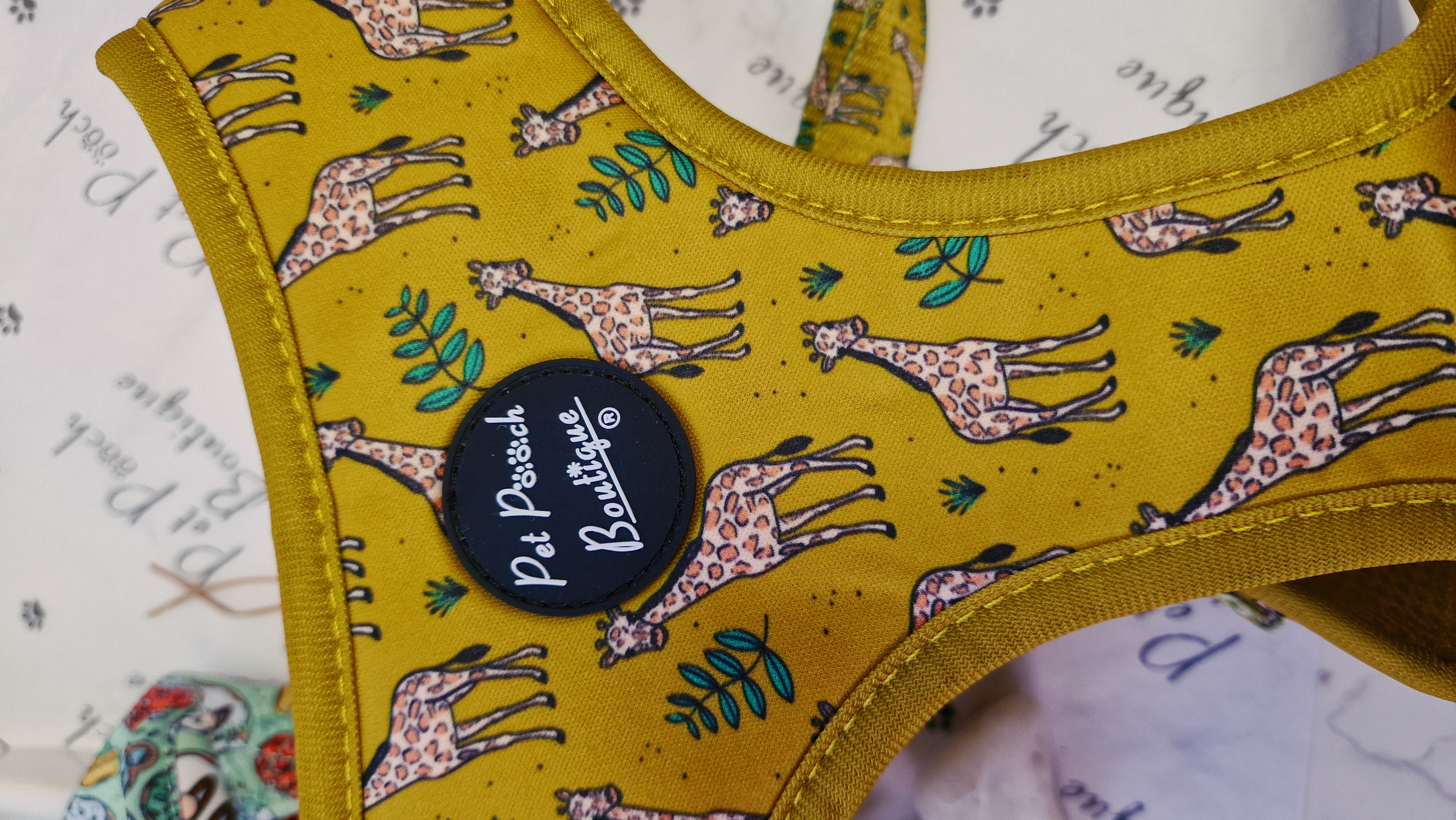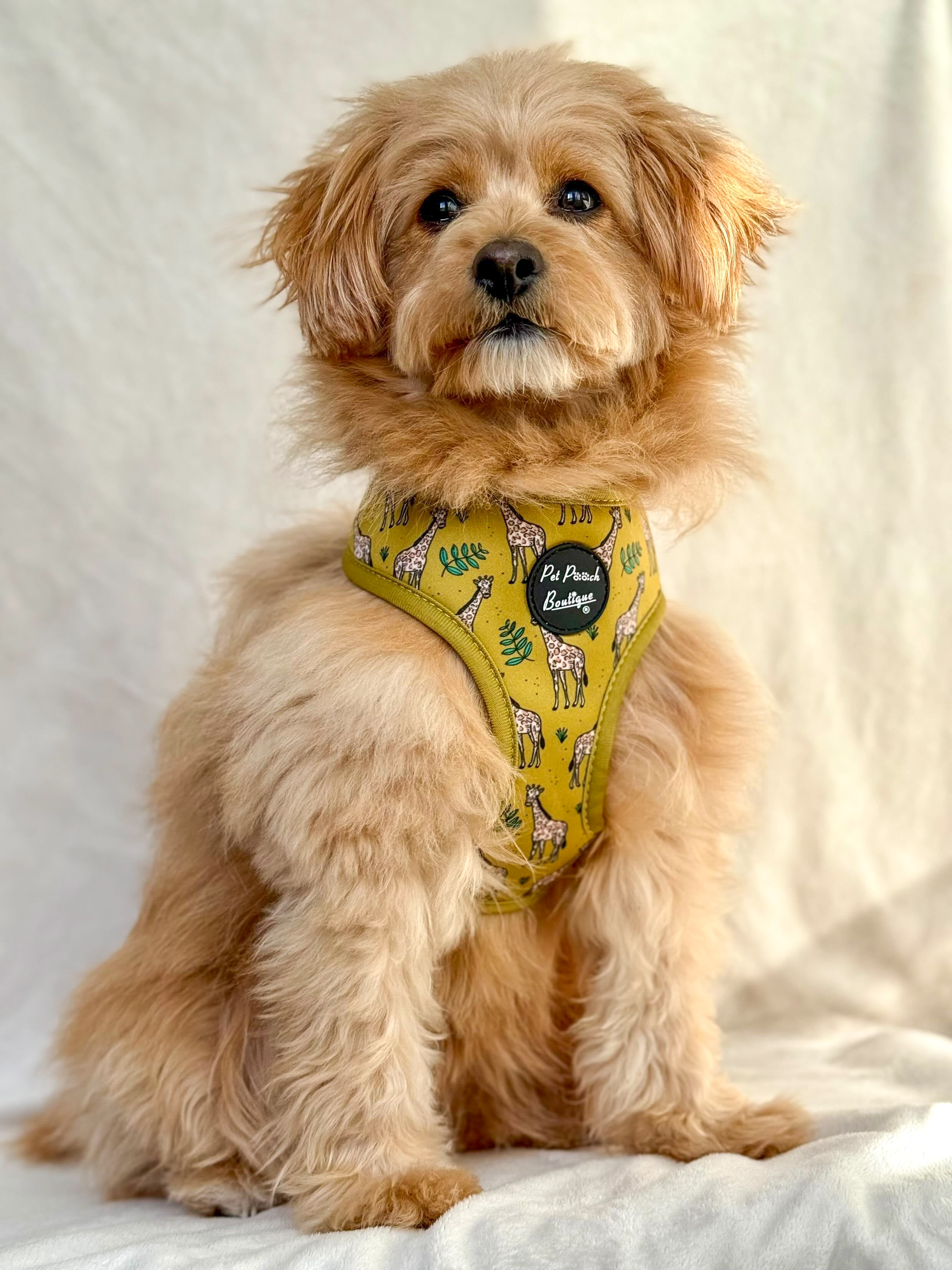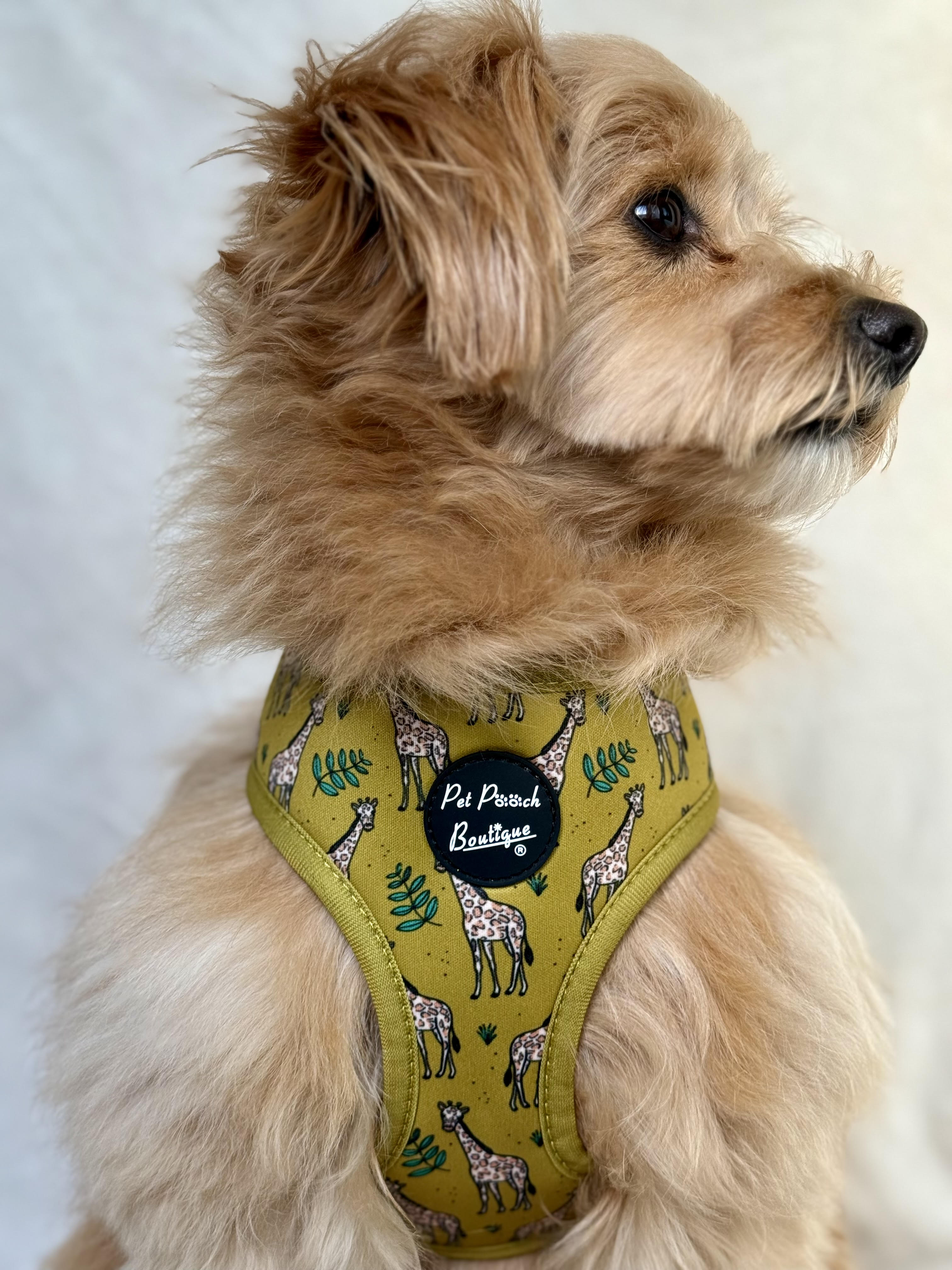 A fun safari inspired design featuring hand-illustrated giraffes and scattered foliage on a warm golden yellow background. Bold, fun, and full of character so its perfect for adventures big or small.